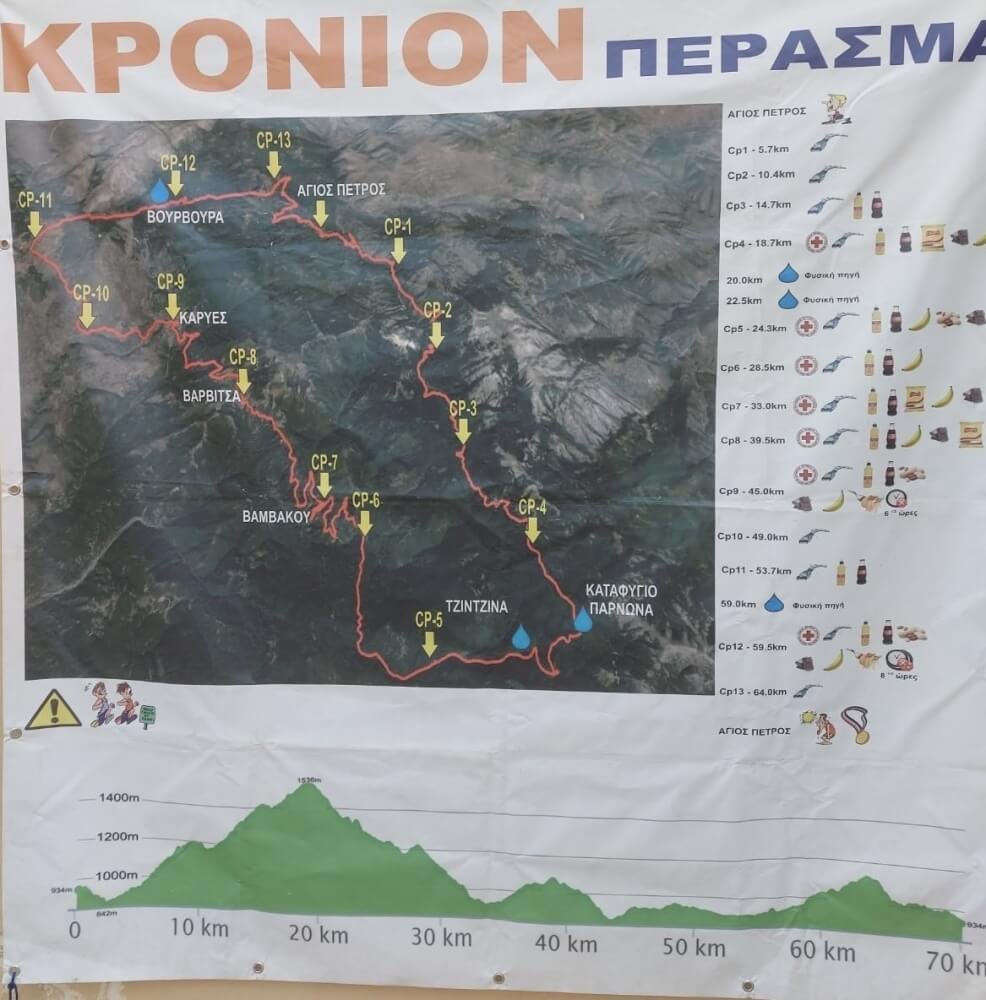 Ο αθλητής μας των υπεραποστάσεων Αντώνης Βλάμης όχι μόνο βρέθηκε στην εκκίνηση των 70 χιλιομέτρων στον Πάρνωνα, Βουνό που χωρίζει την Αρκαδία από τη Λακωνία, αλλά και τερμάτισε σε 9:14':39'' με συνοδό υποστήριξης τη γυναίκα του Έλλη όπως επιβάλλεται από τους διοργανωτές.