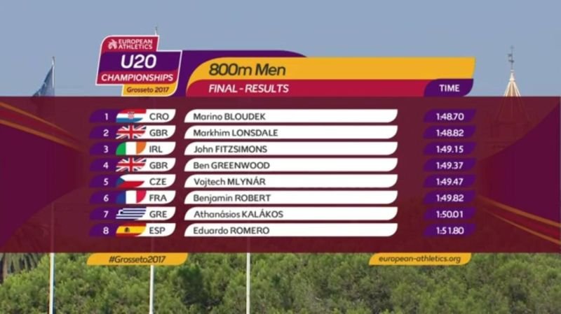 Την επιτυχημένη παρουσία του στο Ευρωπαϊκό Πρωτάθλημα του Γκροσέτο ολοκλήρωσε σήμερα ο Θάνος Καλάκος. Ο αθλητής μας κατέλαβε την έβδομη θέση στον τελικό των 800 μ. με 1.50.01.