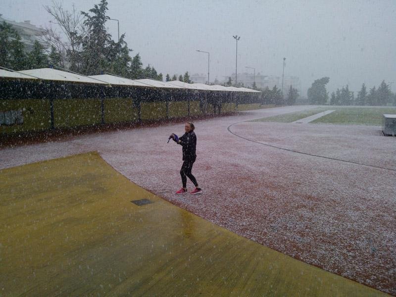 Το χιόνι δεν έγινε εμπόδιο στους αθλητές μας για να γυμναστούν. Ήταν όλοι στο στίβο και χάρηκαν την προπόνηση.