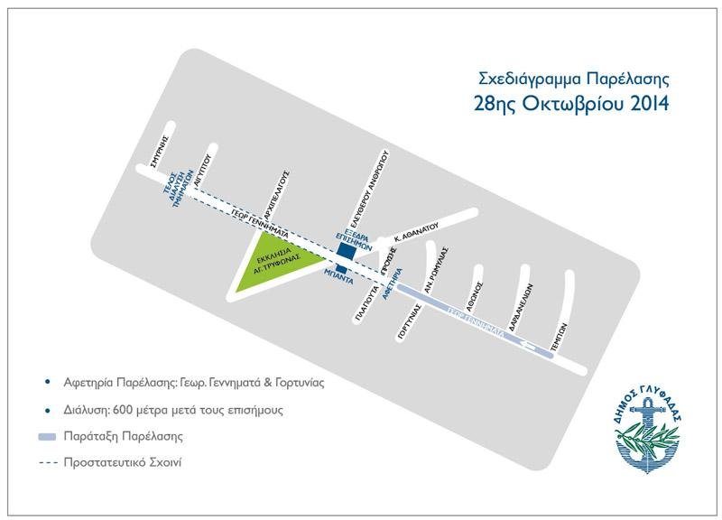 Απέναντι από την εκκλησία του Αγίου Τρύφωνα(Αθανάτου και Γεννηματά) την Τρίτη 28 Οκτωβρίου 2014 και ώρα 10:45 θα γίνει η συνάντηση των αθλητών και αθλητριών του συλλόγου μας για την παρέλαση.